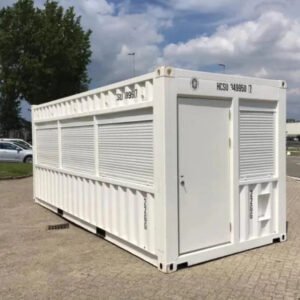 Las ventanas tienen doble acristalamiento y se pueden cerrar con persianas de PVC. El contenedor también está totalmente aislado con paneles sándwich.