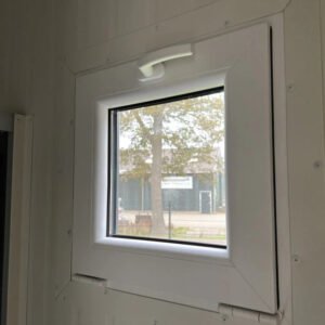 – Marcos de ventanas de plástico con vidrio termopanel.