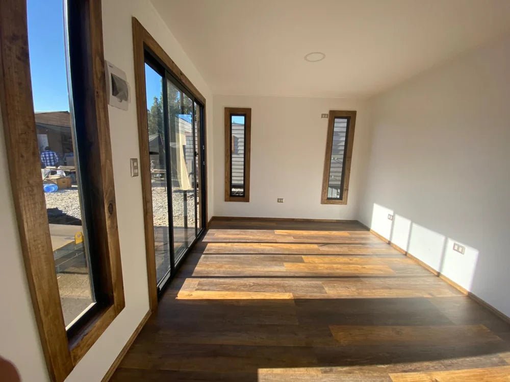 Esta modular de 18 m² es una solución moderna y funcional para emprendedores que buscan un espacio comercial compacto, bien diseñado y listo para operar. Con planta libre para distribuir el mobiliario según necesidad y equipada con dos medios baños, esta unidad se adapta perfectamente a actividades gastronómicas, cafeterías móviles, food trucks fijos o puntos de atención al cliente en ferias y eventos. Su construcción combina materiales de alta calidad como revestimiento exterior en siding de fibrocemento, interior en OSB y volcanita lisa, aislamiento térmico completo en muros y techo, y piso vinílico tipo click. También incorpora un ventanal corredero y ventanas termopanel de aluminio negro, garantizando luz natural y eficiencia energética. La instalación eléctrica es robusta y moderna, con múltiples puntos de luz, enchufes y tablero de 25 A. Esta cafetería está lista para personalizar y operar.